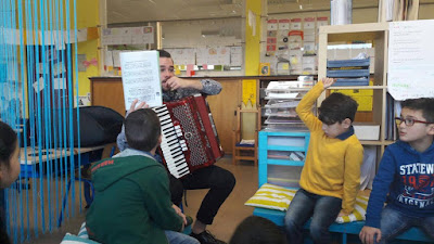Sinterklaas houdt graag van muziek, vandaar dat we samen met de klas een lied aan het oefenen zijn. Ik bracht mijn accordeon mee, zodat het zeker en vast mooi ging klinken. Maar dat moet lukken met al die zangtalentjes in de klas.
