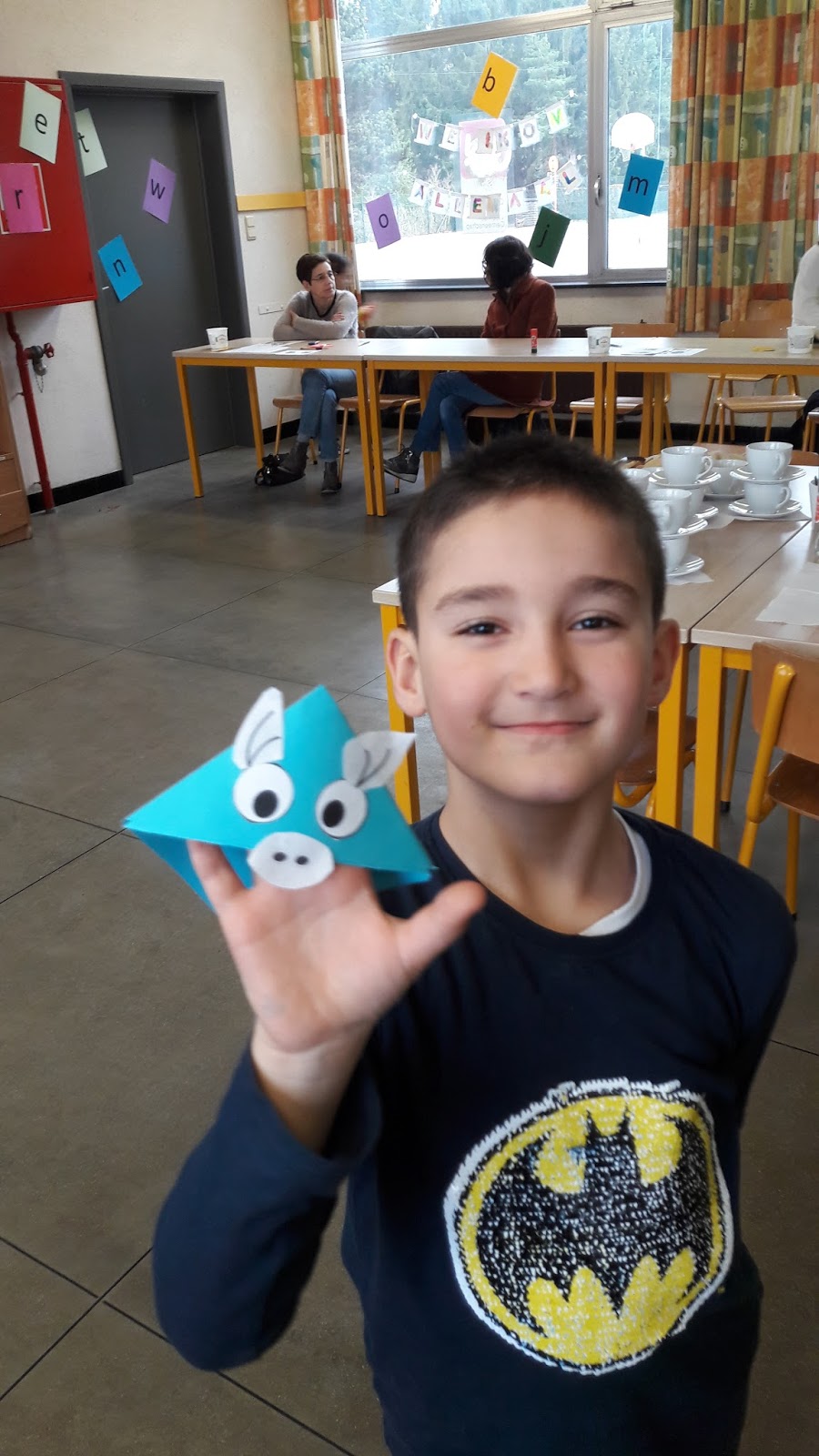 Dan speelden we een letterbingo en knutselden we een boekenmonster, die we goed kunnen gebruiken om te weten waar we gebleven zijn in ons boekje.